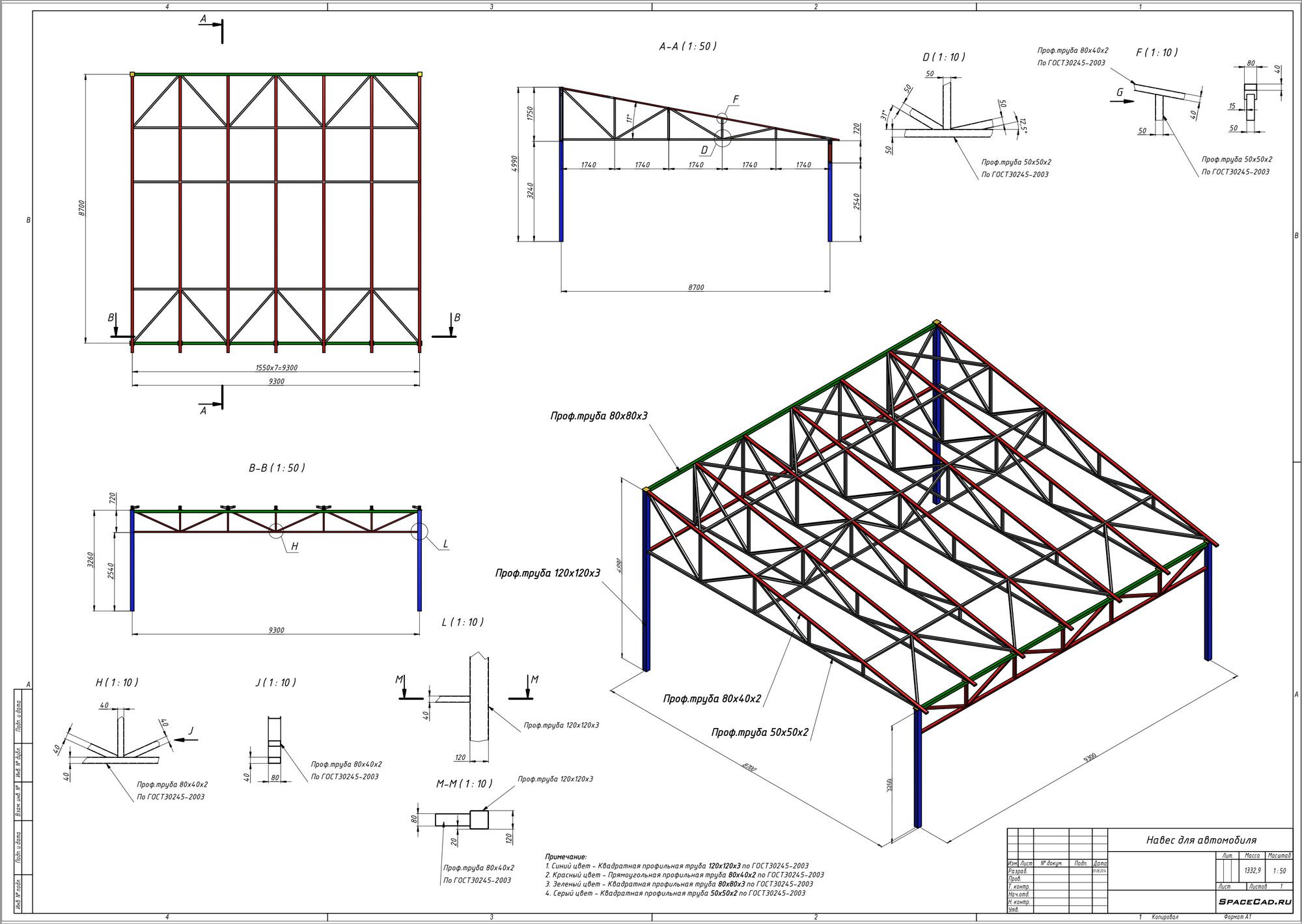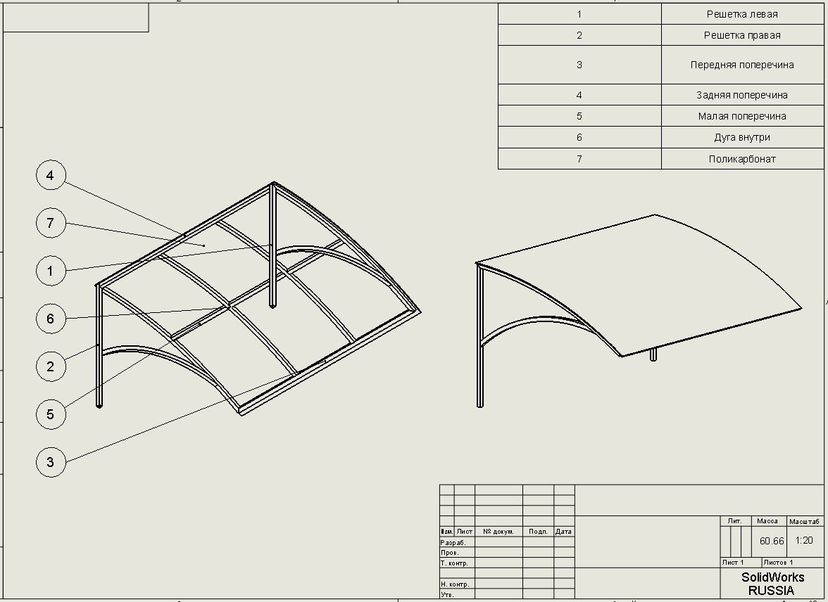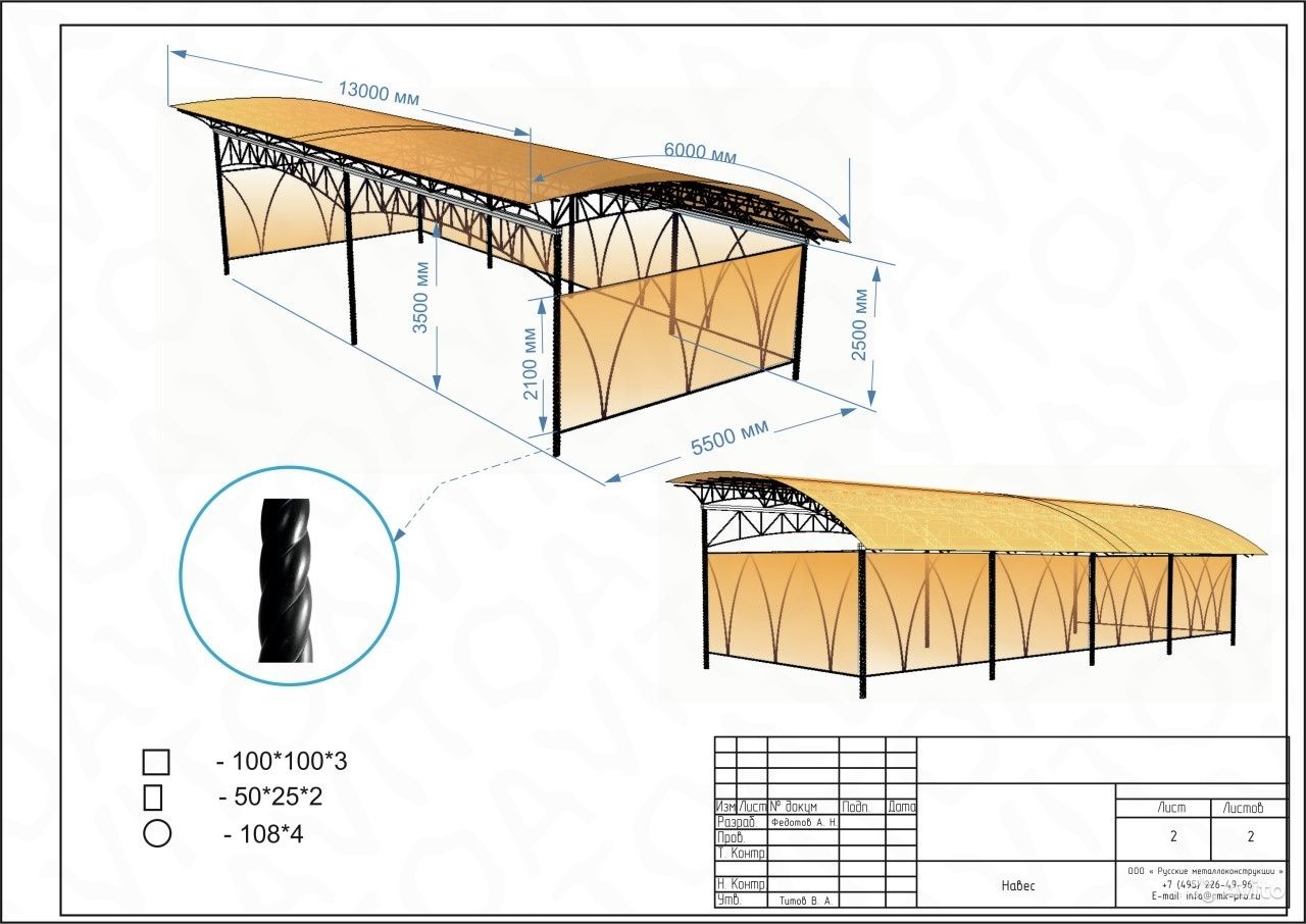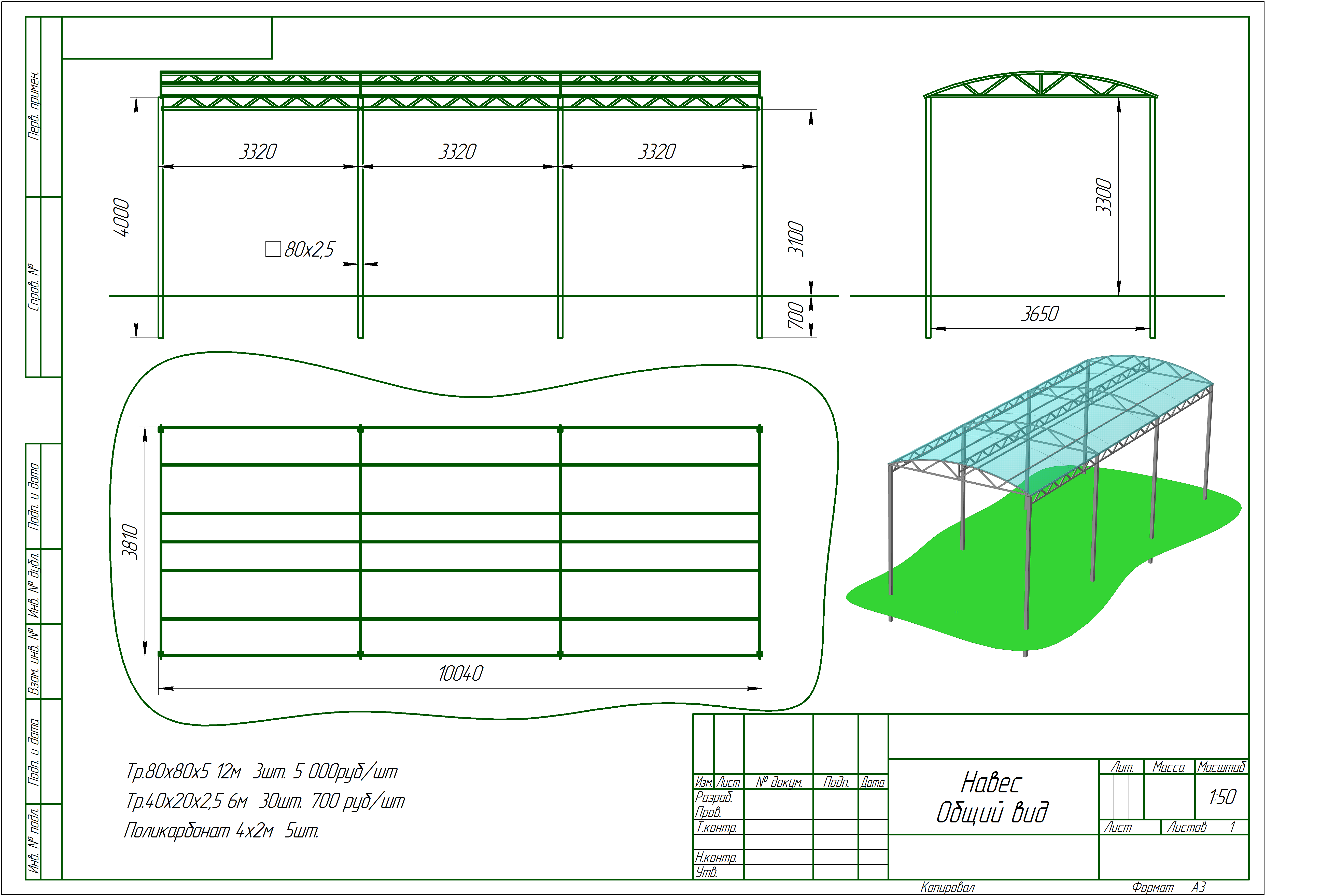 Чертеж навеса, выбор схемы