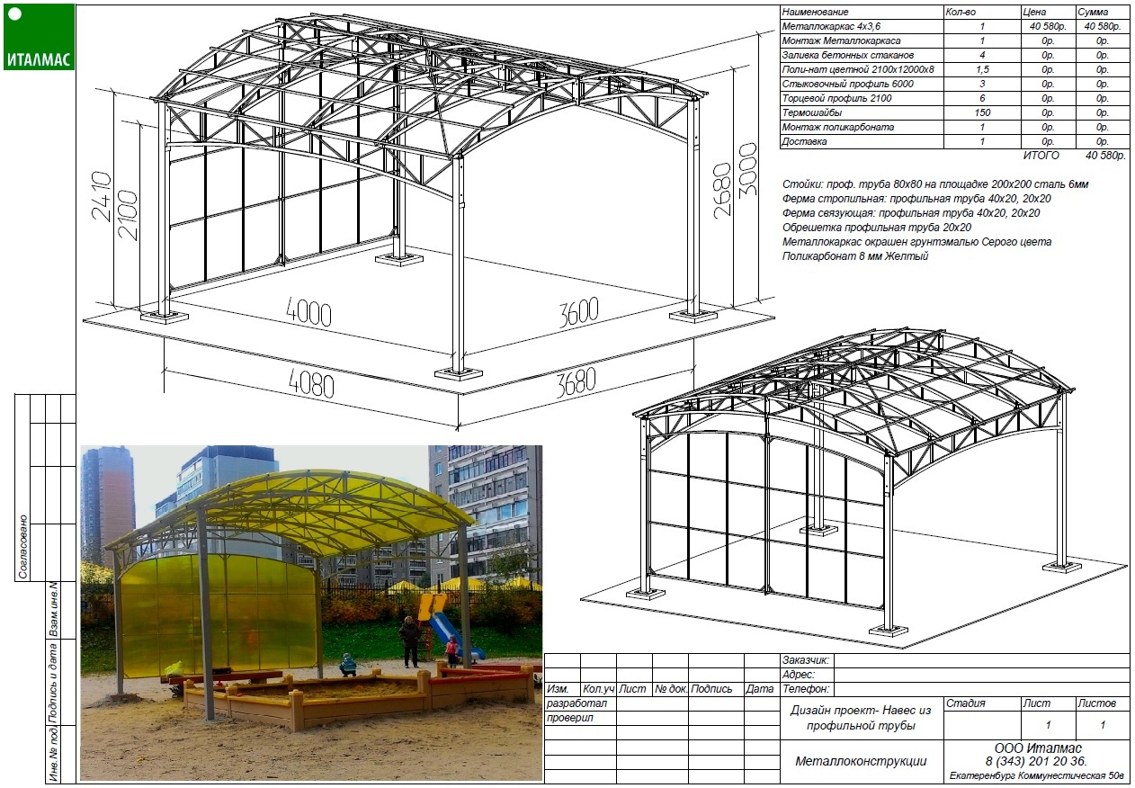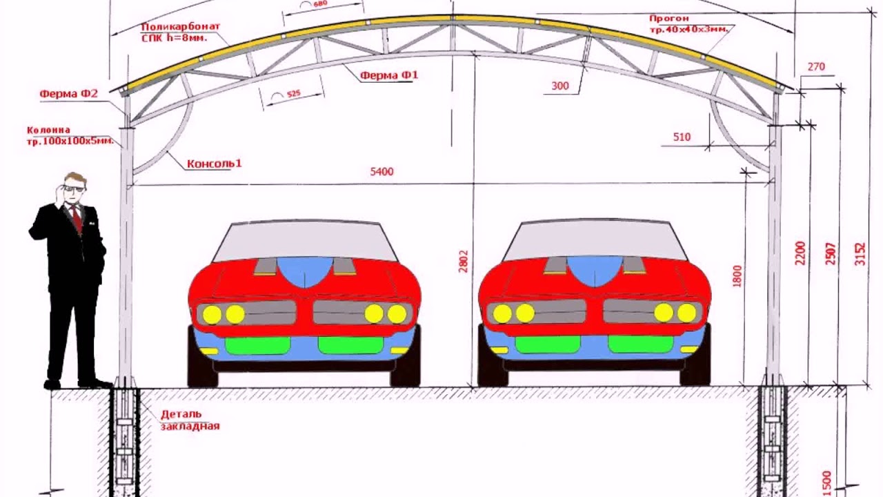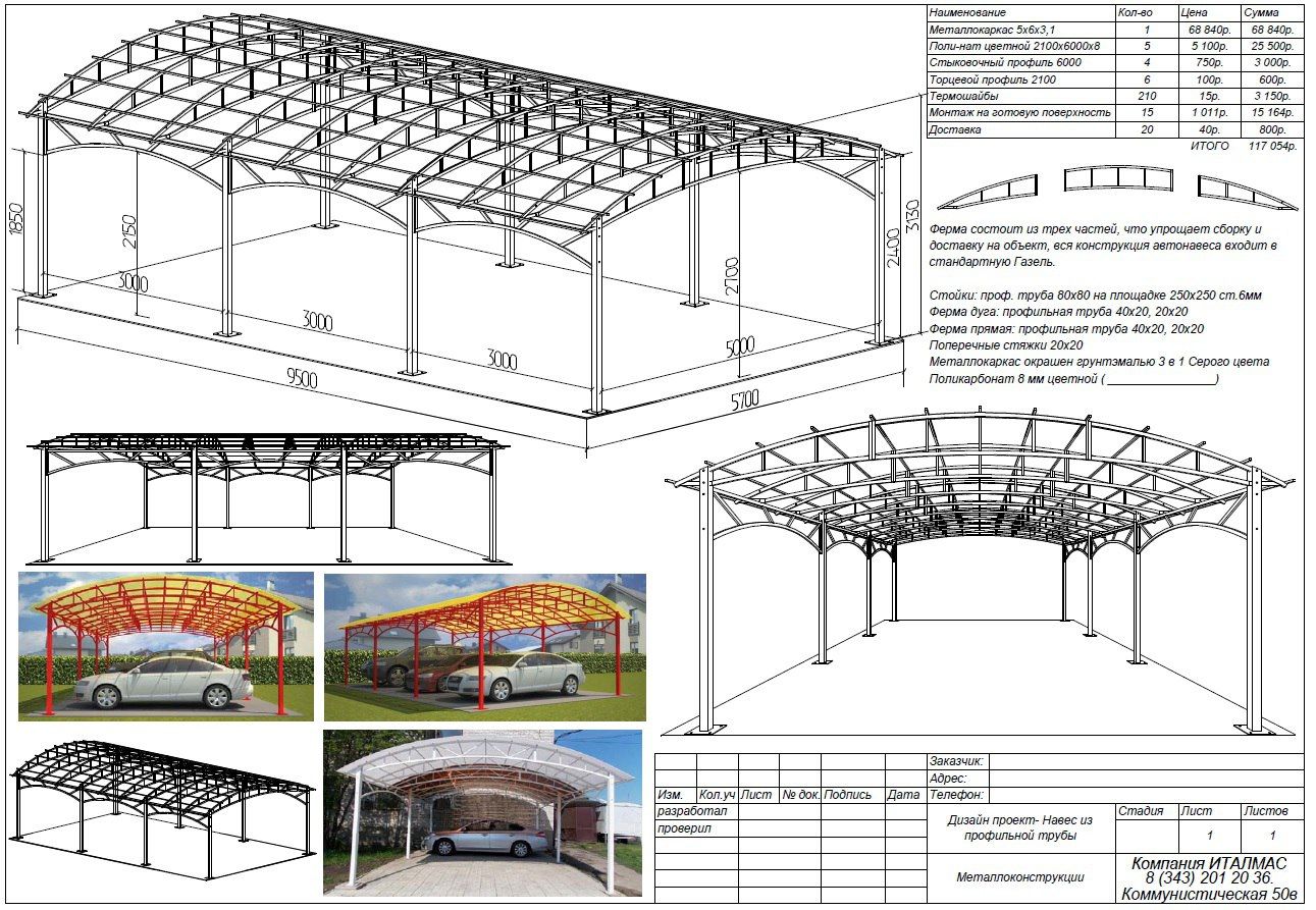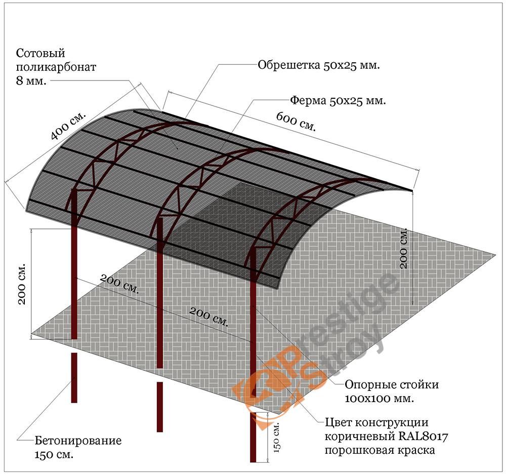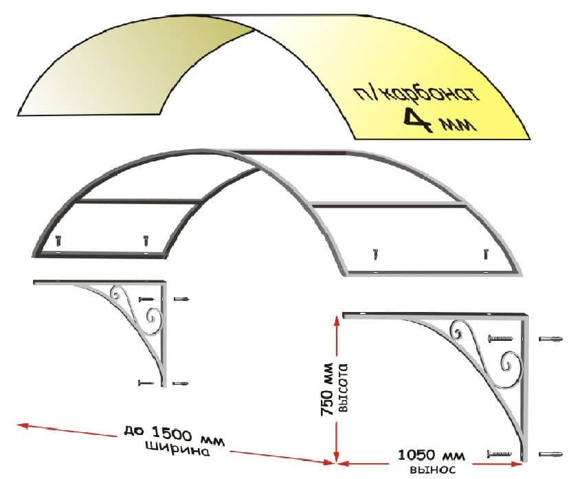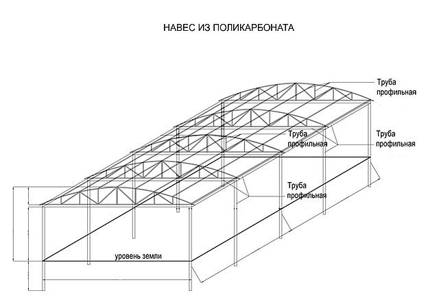 Прежде чем начинать строительство конструкции из поликарбоната, необходимо разработать чертеж навеса.