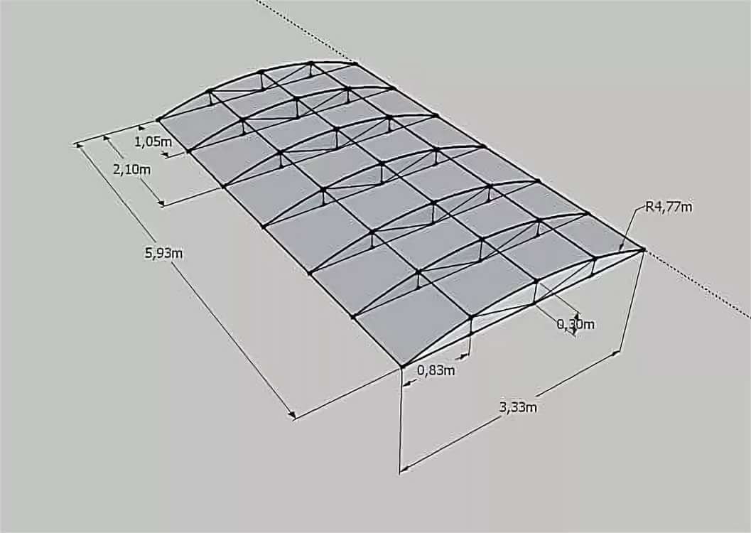 - Размеры элементов рубероида. Они играют решающую роль в определении шага ферм для навеса, скажем. Кстати, это самое популярное покрытие для конструкций, построенных на собственных участках. они легко гнутся, поэтому подходят для устройства криволинейных перекрытий, например, арочных. Все, что имеет значение, это то, как это правильно. рассчитать навес из поликарбоната.