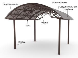 - покрытие . Изготавливается из шифера, поликарбоната, стекла или профлиста;