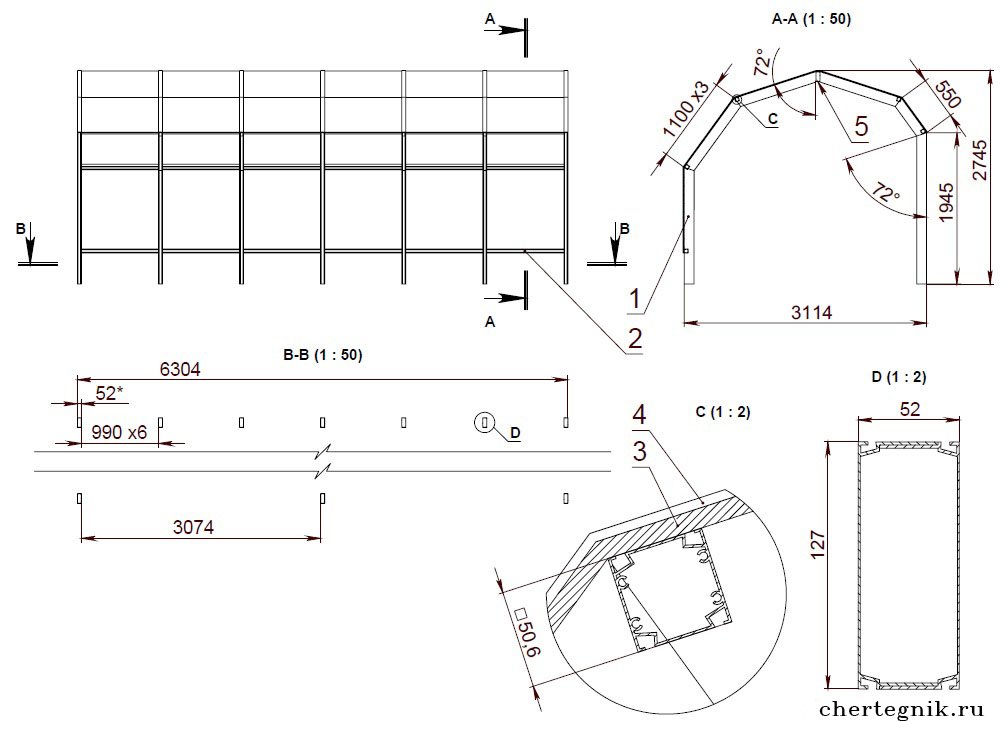 Первым этапом изготовления своими руками ферм из профильной трубы для навеса является составление подробного плана, на котором должны быть указаны точные размеры каждого элемента. Кроме того, целесообразно подготовить дополнительный чертеж конструктивно сложных деталей.