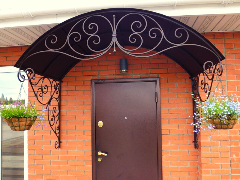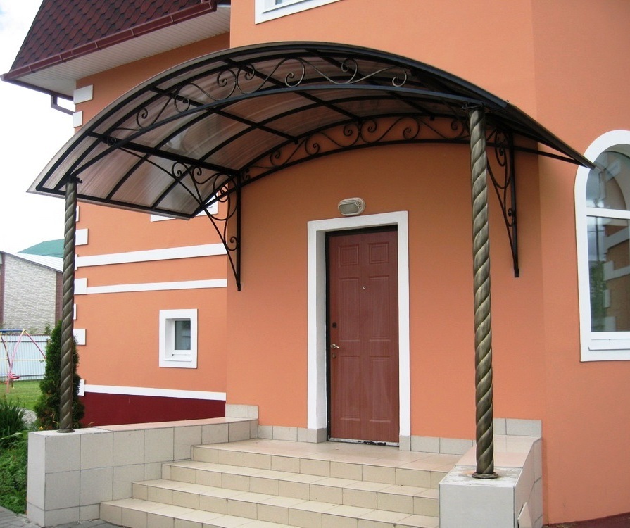 Конструкции защищают входную дверь и прилегающую площадку от осадков и ультрафиолетового излучения