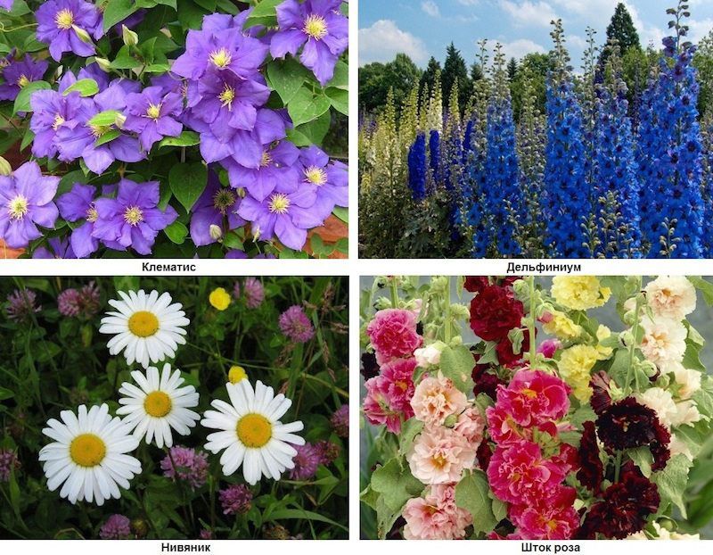 | Однолетние цветы | Двулетние цветы | Многолетние цветы |