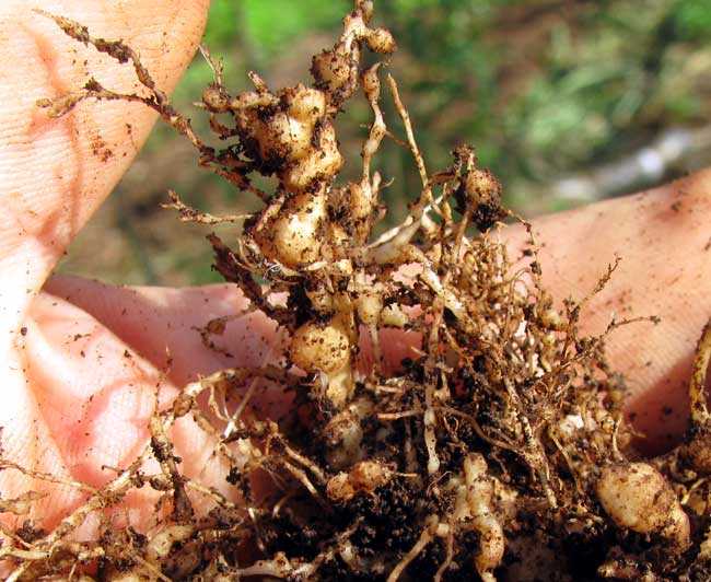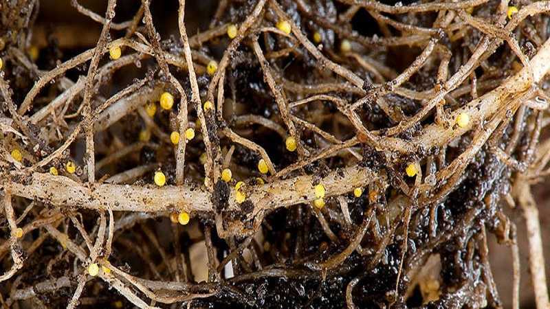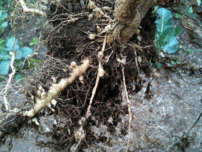 Если выкопать такие растения, то на корневой системе их вы обнаружите утолщения – они говорят о наличии галловой нематоды, а вот если увидите шарики-цисты, то это говорит о наличии золотистой нематоды.