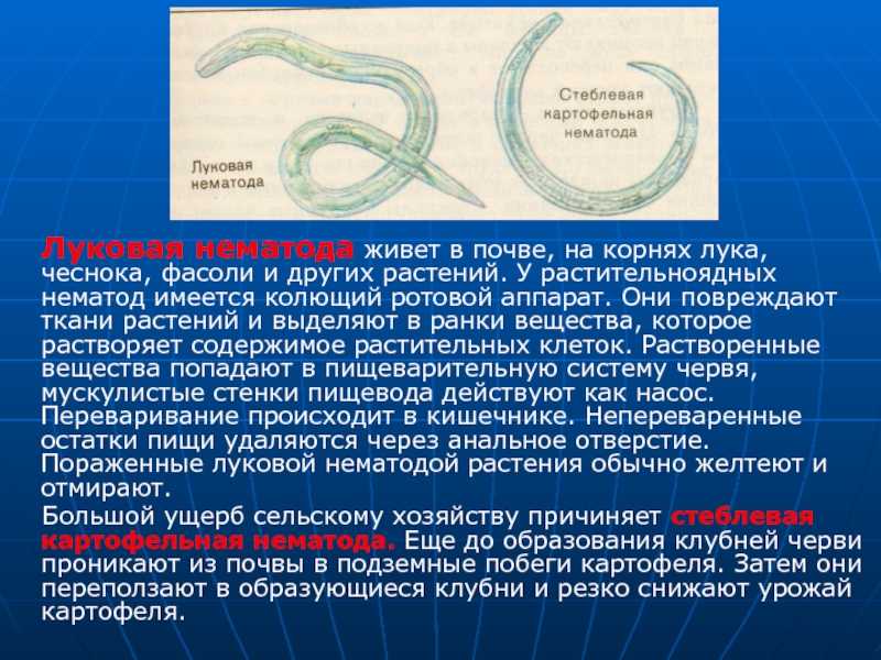 Нематоды питаются микроэлементами, поглощаемыми корнями растений.