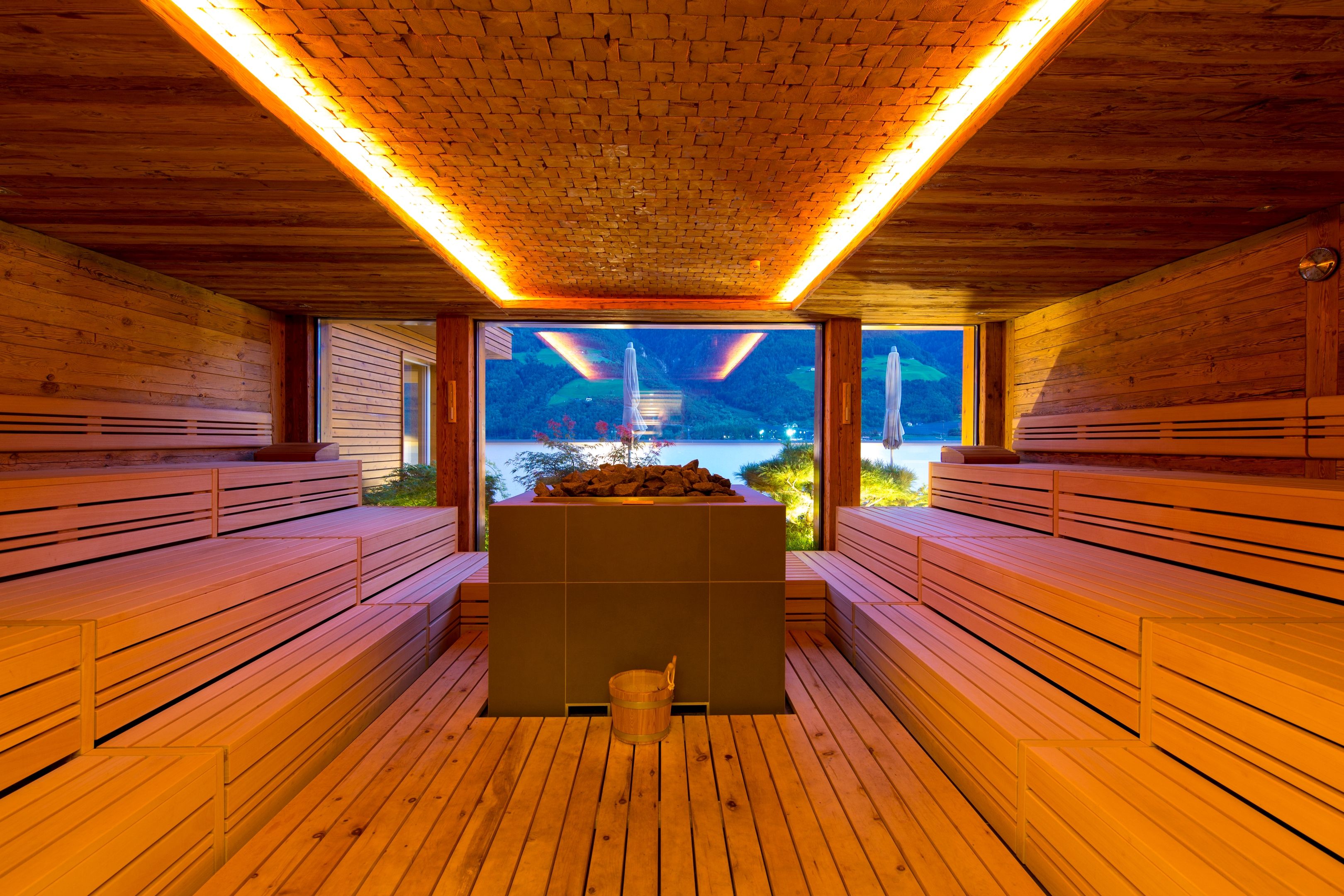 Парилка вмещает четверых человек. Необычная банная процедура занимает 40 минут: за это время передвижная капсула дважды поднимается на высоту 500 м и спускается вниз. Летающая сауна оснащена всем необходимым для прекрасного времяпрепровождения. А в качестве дополнительной опции вам предложат охладиться в чистейшем снегу на вершине горы.