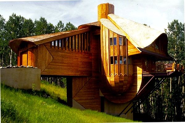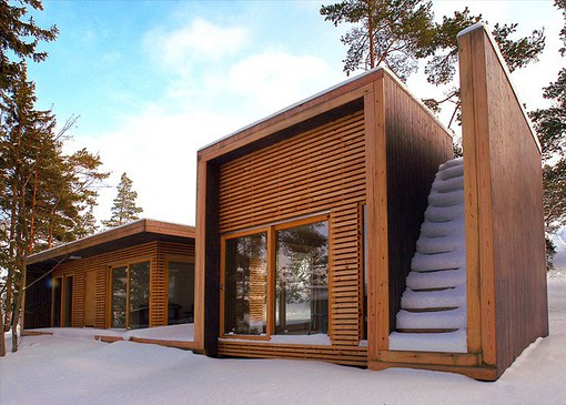 Недорого, эффектно и симпатично.Такие дома часто даже снабжают «зеленой» крышей, и тогда результат вообще потрясающий.