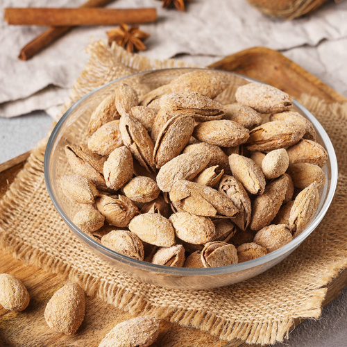 Этот миндаль сначала очищают от внешней, жёсткой скорлупы, после чего остаётся лишь тонкая «бумажная» скорлупа, которую без труда сможет открыть даже ребёнок 👍