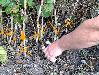 - Выбор более сильных тростей для хранения имеет смысл на данном этапе в конце лета. Потенциал урожая в следующем сезоне увеличивается за счет пропускания солнечного света для зарождения боковых почек осенью. Тонкие, чтобы оставлять трости диаметром ½ дюйма или более (удалив более слабые живые трости) на квадратном метре из двух или трех трости по ширине грядки.