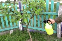 Полученной смесью опрыскивают верхний слой почвы, а также кусты и деревья.