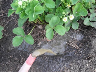 - В период образования ягод проведите вторую подкормку земляники (25-30 г суперфосфата, по 10 г аммиачной селитры и хлористого калия на 1 кв.м).