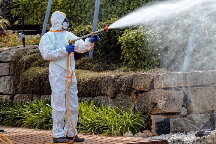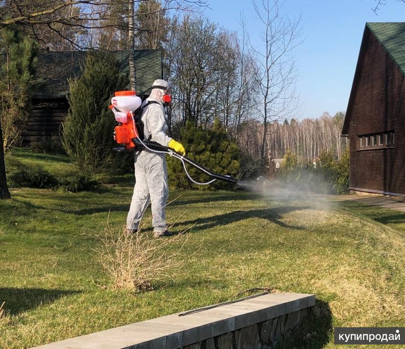 Обработка территории генератором тумана. Частицы инсектицидов 50-80 мкм проникают в сложнодоступные места, воздействуя на ос или шершней, не оставляют запаха. Обрабатываем непосредственно гнезда насекомых и возможные места их появления на участке.