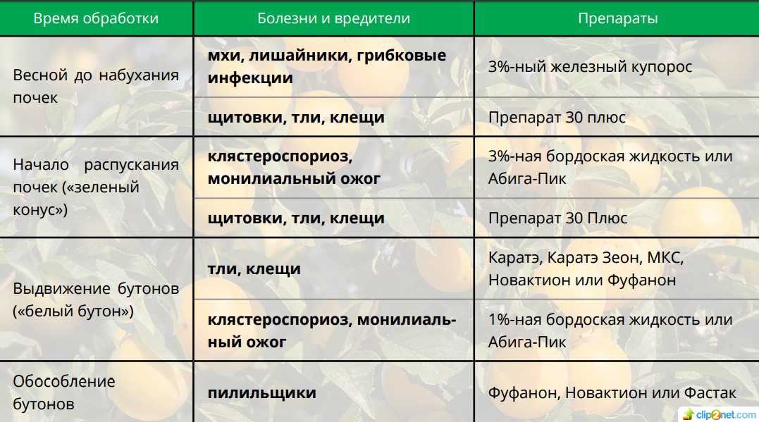 Хотя лучше дождаться, когда кроны станут полностью голыми — в это время почки на ветках уйдут в состояние покоя, а значит, можно будет использовать более мощные и эффективные химикаты. Успеть обработать сад нужно до того, как температура воздуха начнёт стабильно опускаться ниже 5 градусов тепла. Хоть опрыскивание позже этих сроков и не принесёт вреда растениям, оно просто будет бесполезным, так как препараты от болезней и вредителей перестают работать при низких температурах.