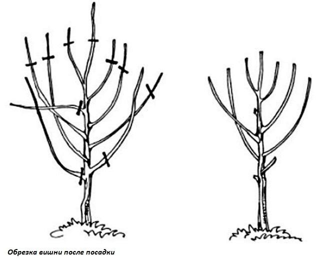 Обрезка годовалых саженцев вишни и черешни осенью, а также молодых неокрепших растений недопустима.