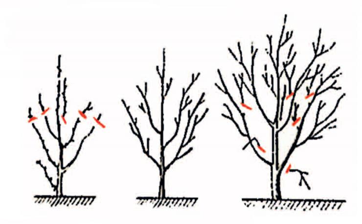 Косточковые не страдают от загущения кроны, им не нужен центральный проводник или другая специализированная форма кроны. При обрезке убираем только конфликтные ветки и острые развилки.