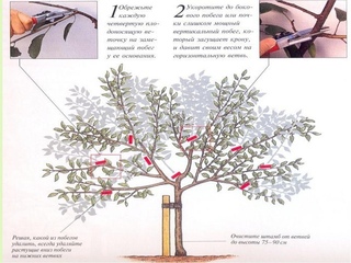 Для того чтобы дерево не тянулось ввысь, крону рекомендуется укорачивать до высоты в 3-3,5 метра. Когда растение начинает обильно плодоносить, весной проводят прореживающую обрезку. Кроме того, весной необходимо удалять все повреждённые или перемороженные за зиму отводы.