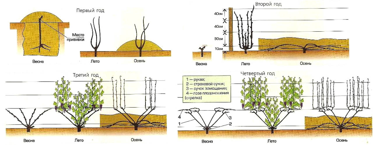 Выделим некоторые нюансы формировки кустов винограда (выбирая для себя самое подходящее):