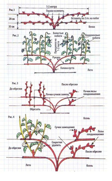Как правило, летом вырастает больше побегов, но все лишние надо удалять, как только они достигнут 5-8 см. Оставлять надо здоровые и растущие в стороны от шпалерной проволоки.