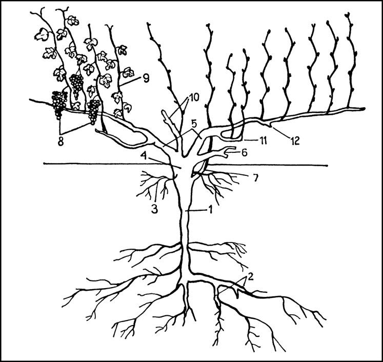 Кроме того, при установлении системы формировок необходимо считаться с удобствами механизированной обработки почвы и требованиями, предъявляемыми к качеству винограда (содержание сахара и кислот к моменту его сбора). Обрезкой и формированием виноградных кустов разрешается задача воспитания примерно одинаковых по силе развития плодовых побегов. Сгибание лоз и обрезка нарушают сильное проявление полярности (стремление расти вверх), свойственное дикому винограду.