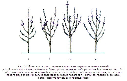 Целью обрезки дерева в первые 3-4 года после посадки является контроль его формы за счет развития сильной , хорошо сбалансированный каркас, состоящий из центральной направляющей с ответвлениями лесов.