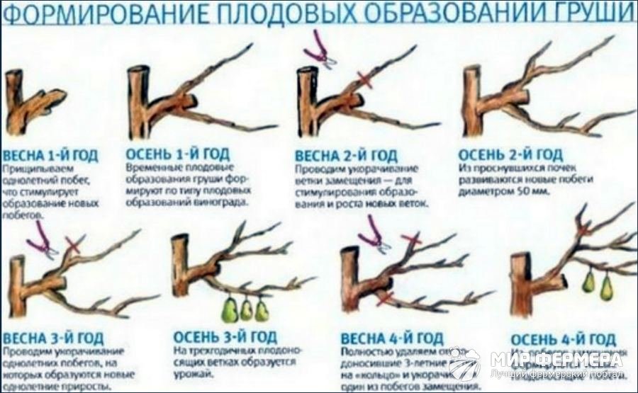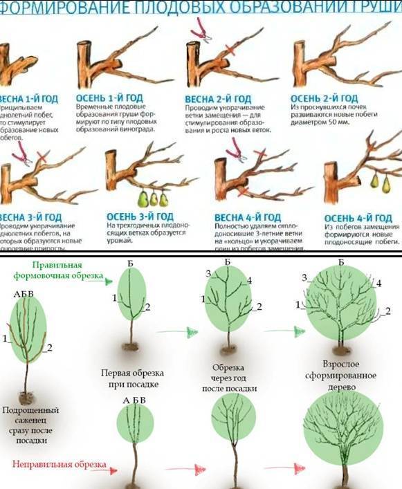 Они не приносят никакой пользы растению. На них селятся насекомые-паразиты, развивается грибок. Санитарную обрезку выполняют весной, осенью и при необходимости летом. - Формирующая для груши нужна, чтобы ограничить размеры кроны. У этого дерева высокая скорость роста. Поэтому крону необходимо прореживать, чтобы удобнее было собирать плоды и выполнять другие работы.