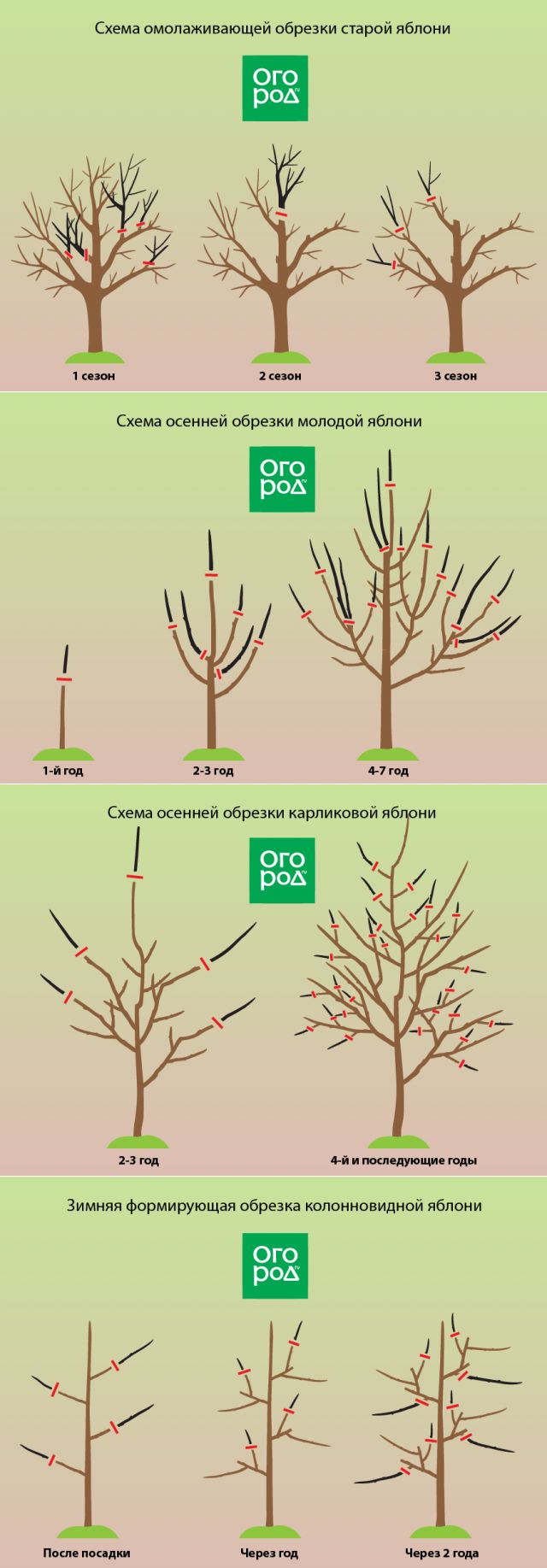 Этапы обрезки яблонь