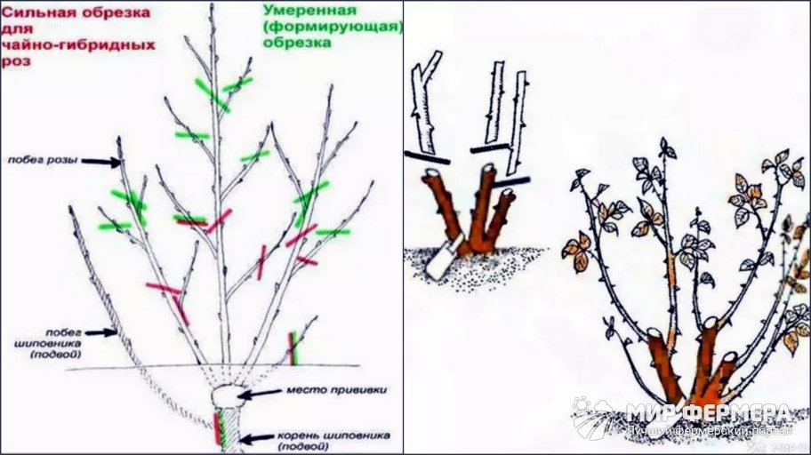 Осенняя обрезка роз проводится с целью облегчить их укрывание. Чайно-гибридные сорта неплохо переносят зиму, однако следует удалить поврежденные побеги, листья, невызревшие зеленые побеги, а также побеги бордового цвета, которые растение выпустило слишком поздно, и они не успеют вызреть. Такие побеги называют жирующими.