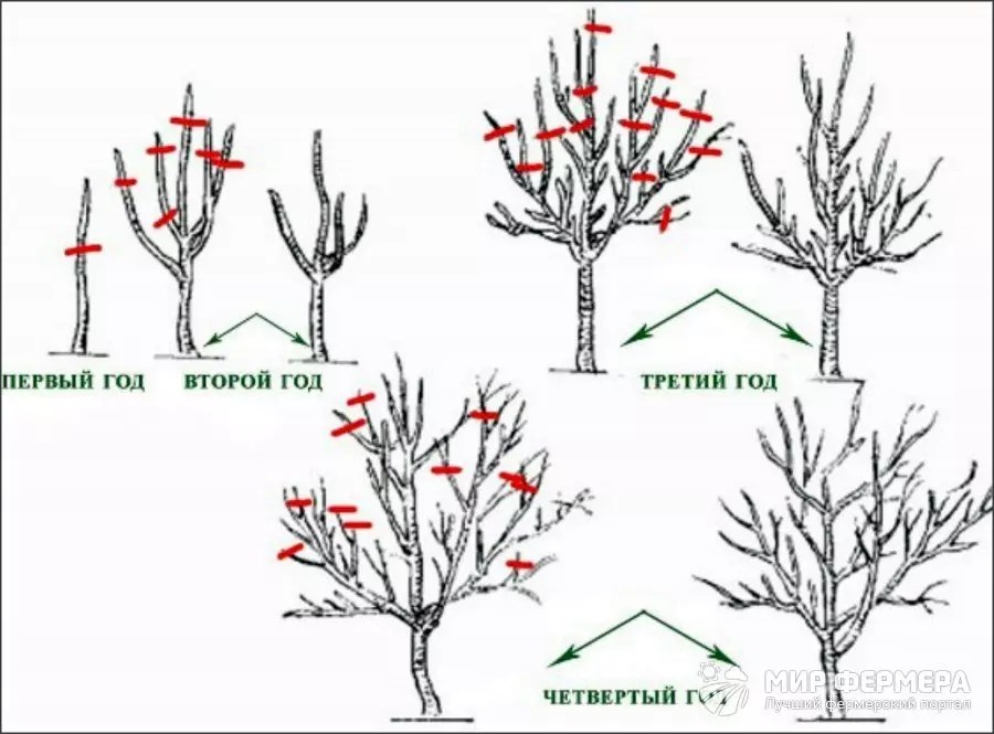 Схемы обрезки персика