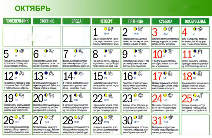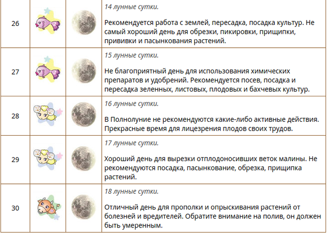 Приведенный ниже календарь поможет вам определить подходящее время для обрезки по лунному календарю.