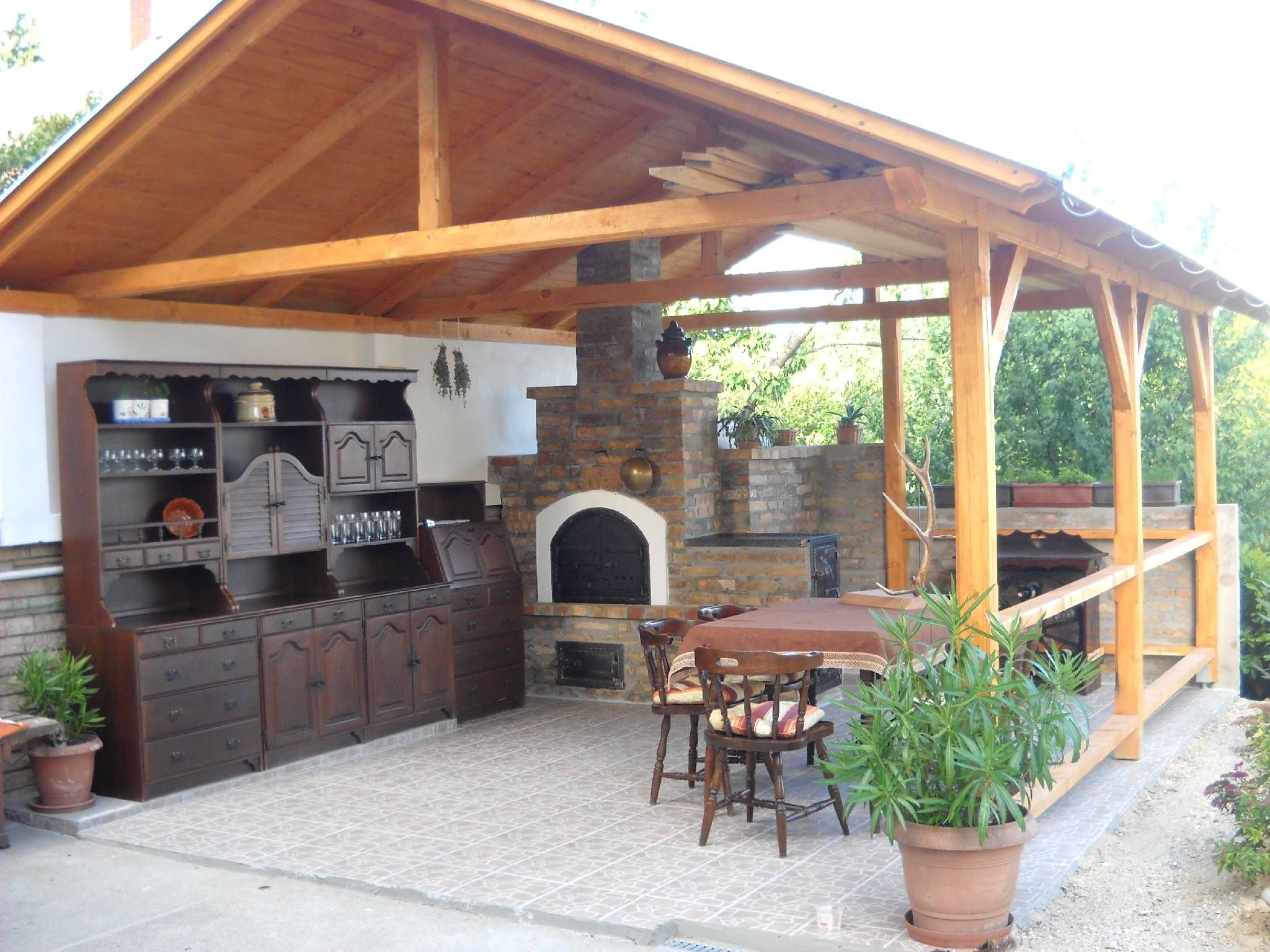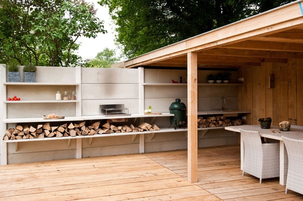 Летняя кухня под открытым небом должна быть обеспечена помещением для защиты утвари от дождей