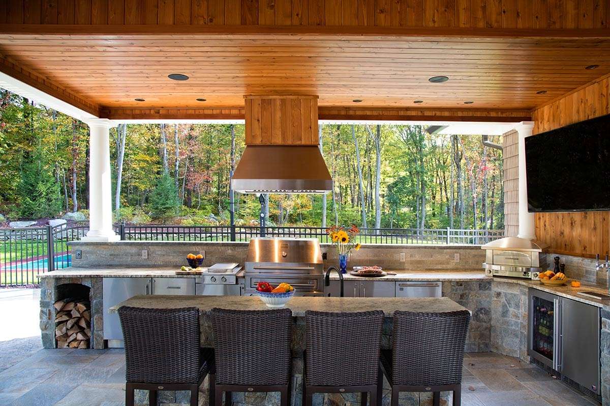 Летняя кухня или кухня на открытом воздухе являются одним из наиболее востребованных дополнений к высококлассным новым домам, и, по оценкам Национальной ассоциации домостроителей, летняя кухня может добавить до 130 % ее стоимости к покупной цене дома. .