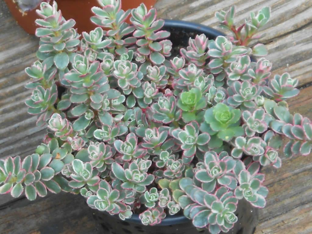 Я принес свои Phedimus spurius «Трехцветный» дом от Лоу в Гринвилле, штат Миссисипи, когда жил в особняке в Лиланде. Это были очень красивые растения с зелеными листьями с белой каймой. Я, должно быть, купил два, потому что один в горшке, а другой в земле.