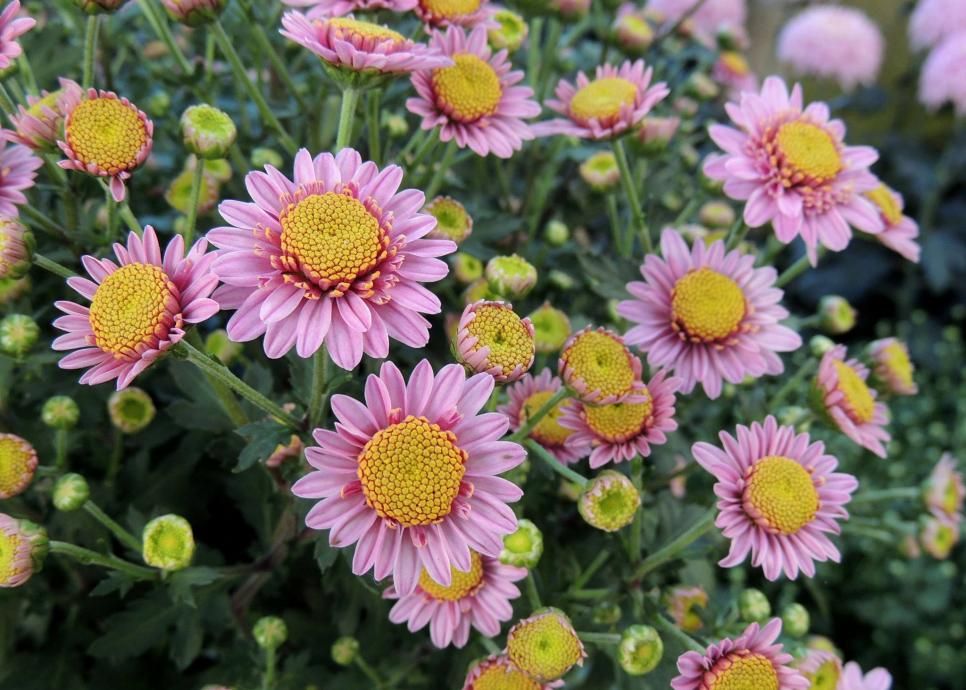 Я не уверен, к какой категории относятся мои маргаритки Шеффилд, но они также классифицируются как хризантемы. Шеффи — прекрасные осенние растения, ярко-розовые, начиная с сентября и хорошо цветущие до октября. Они немного гибкие по краям, но они удивительно решительны и надежны.