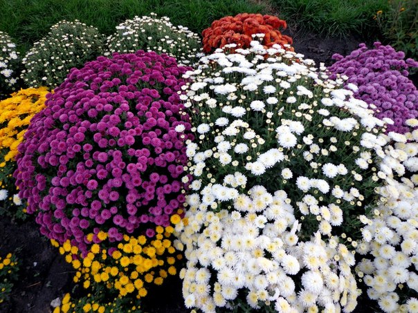 Конечно, клумбу можно разбавить и другими однолетниками. Например, хризантемы отлично сочетаются с бархатцами, календулой и колокольчиками. Но сортов хризантемы так много, что можно обойтись только ими.