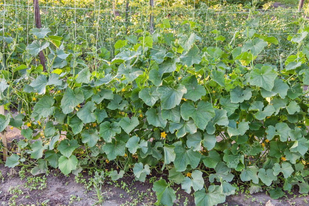 - В вертикальном положении кусты огурцов лучше защищены от механических повреждений;