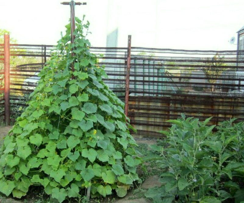 Однако при такой формировке урожай будет немножко меньше. Так обычно формируют огурцы в теплице, где для растений более комфортные условия.