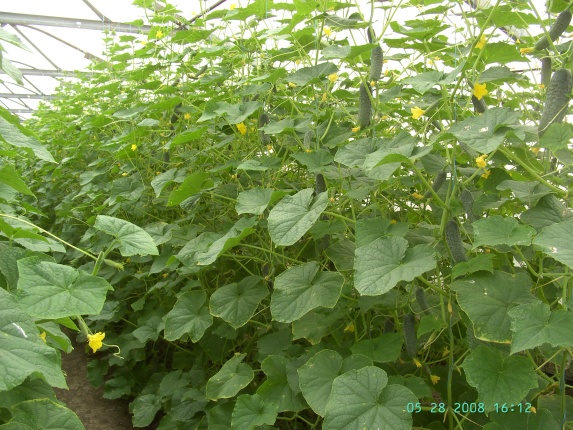 Просто нужно следить, чтобы форточки (или двери, если стоит жара) были открыты. Я живу в Тверской области, у нас три таких теплицы, 4х3 и две 8х3. Огурцов сажаем 7 — 8 корней сортов Маринда, Изящный, да любой. Урожаи большие, нынче ещё чуть-чуть сократим до 5 — 6 корней.