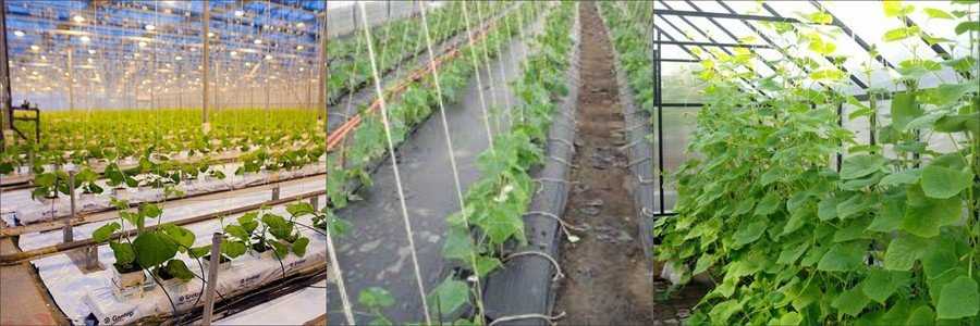 Теплицы обшиваются двойным слоем поликарбоната или стекла. Промышленные теплицы для огурцов, оснащаются системой автополива, контроля температуры и увлажнения воздуха. Обязательны автоматические шторки для затенения в жаркую погоду.
