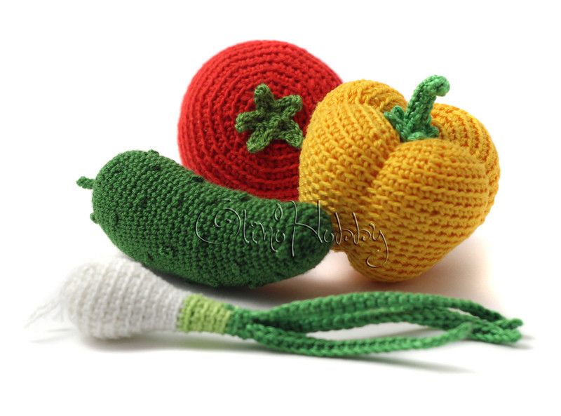Вы можете увидеть фотографии моих овощей крючком ниже. Их можно приобрести всего за 150 долларов США за весь набор из 11 вязаных игрушек, которые можно использовать как в образовательных, так и в декоративных целях.
