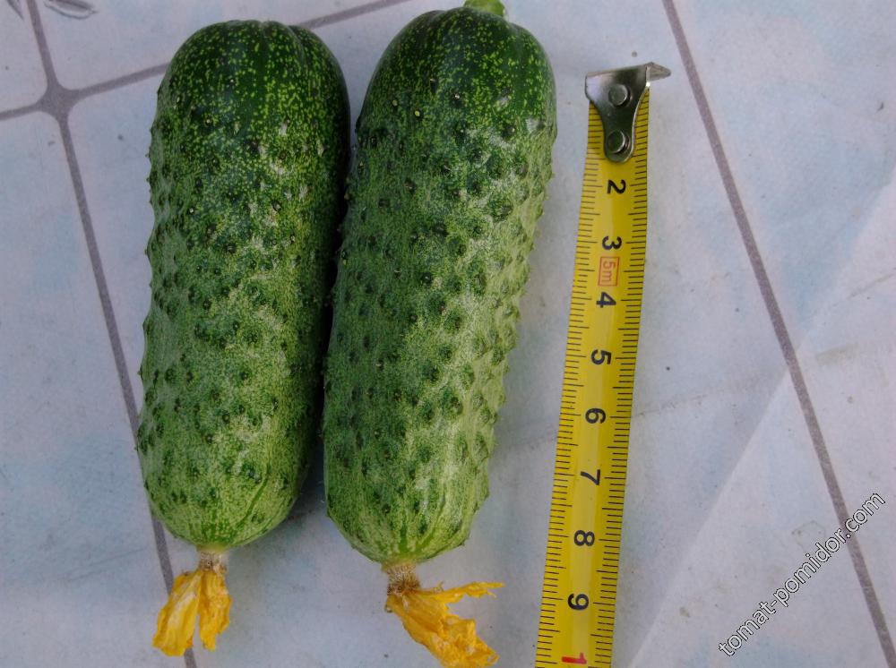 Поэтому этот сорт часто выращивают для дальнейшей продажи.Средняя длина огурцов 11 см, вес 100 г. В диаметре достигает 3,5 см. Овощи имеют хрустящую и сочную мякоть. Это делает их идеальными как для консервирования, так и для маринования. Важно: Для повышения урожайности стоит удалять с куста овощи, длина которых достигла 9 см и более.