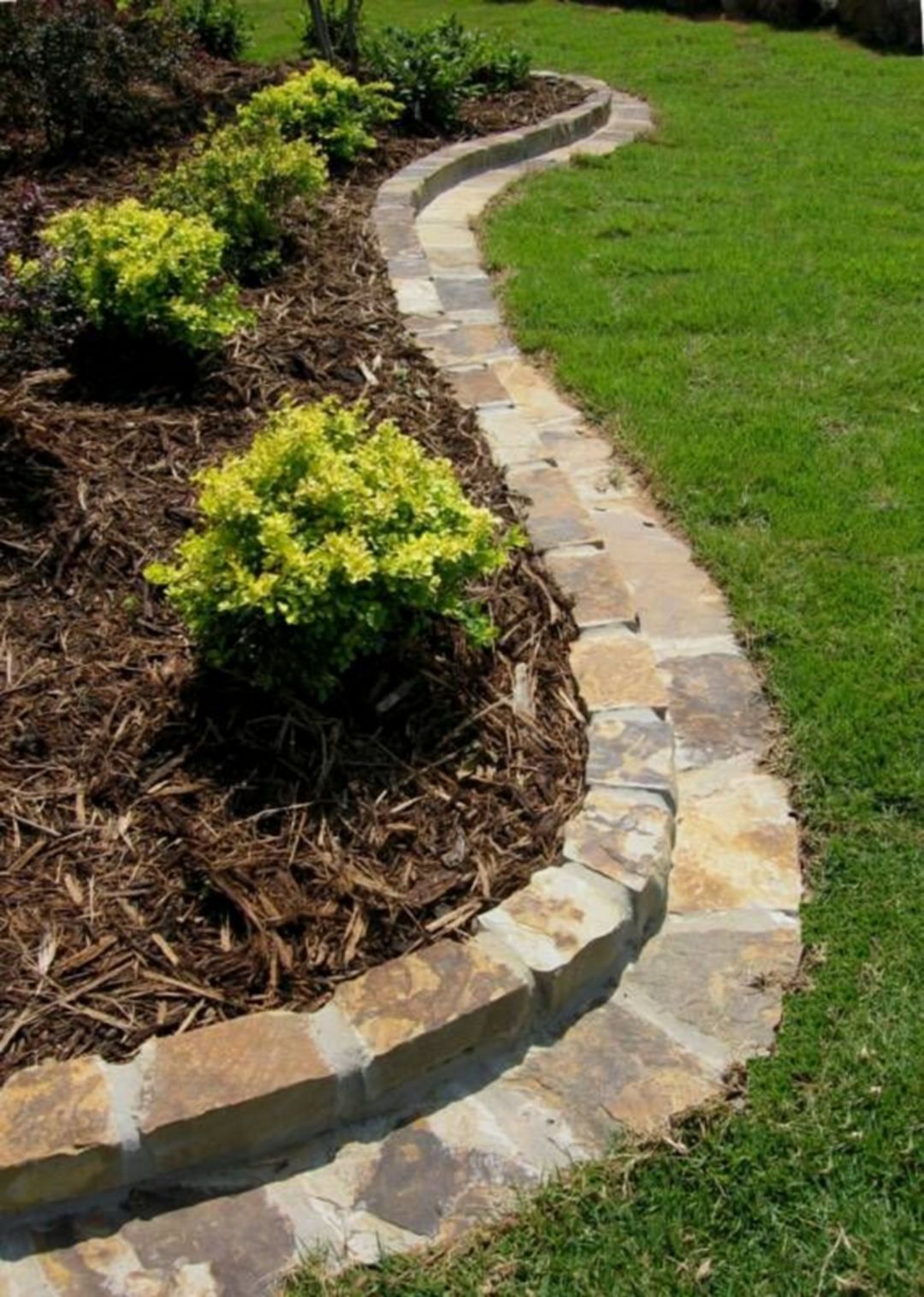 Сформируйте границу между клумбой и газоном путем укладки широкой, плоской каменной плитки. Она придаст вашему саду романтический английский характер. Каменные плитки неправильной формы и разные по толщине долговечны и устойчиво держатся на границе.