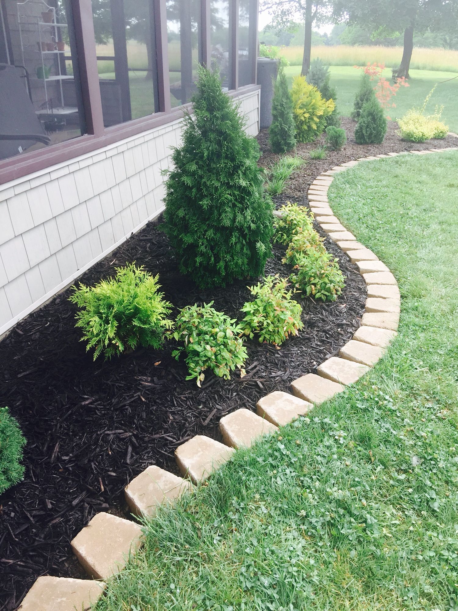 Жесткие бордюры могут быть сделаны из длинных полос виниловой или металлической кромки, частично вдавленных в землю, или из кирпичей, брусчатки, терракотовой плитки или даже бутылок с вином, опущенных горлышком вниз. Убедитесь, что они достаточно утоплены, чтобы под ними не росла трава, и их можно было легко косить рядом с триммером, или их вряд ли можно будет пережевывать.