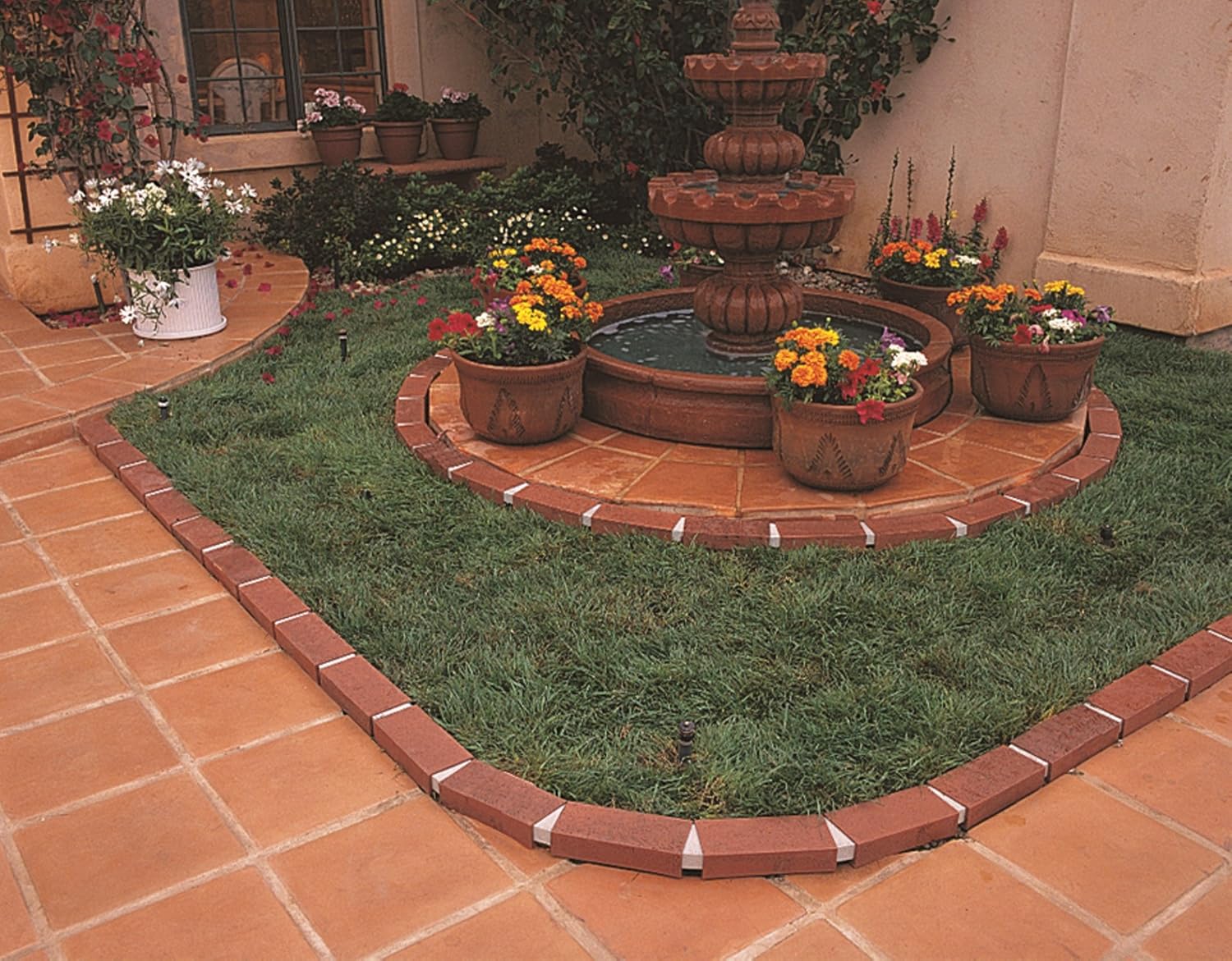 Нет ничего плохого в чистых очертаниях традиционного кирпичного обрамления дорожек. Это также отличный способ не дать газонам заползти на клумбы, обеспечивая при этом классический и однородный вид.