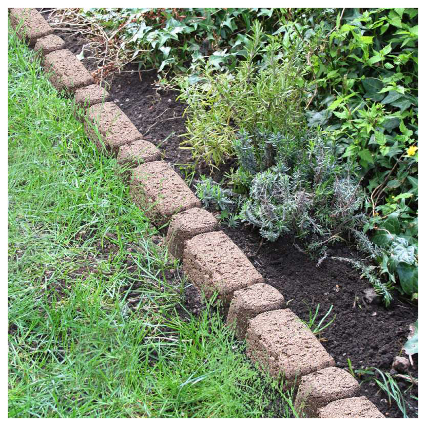Если вы делаете окантовку нескольких клумб, направляйте кирпичи в одну сторону.