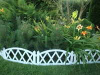 - для защиты насаждений на клумбах от детей и домашних животных потребуется достаточно высокое, не меньше 40 см, ограждение. Но чтобы при этом сохранить визуальную привлекательность клумбы, используют «прозрачные» заборчики – штакетники из дерева, металла или пластика.