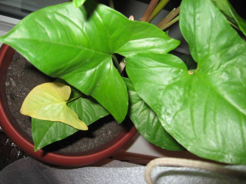Если вы видите, что листья опустились вниз, значит, не хватает влаги в почве или, наоборот, растение перелито, и корневая система загнивает. В случае перелива надо вытащить алоказию из горшка, просушить в течение нескольких часов, посадить в новую емкость с новым грунтом и немного полить.