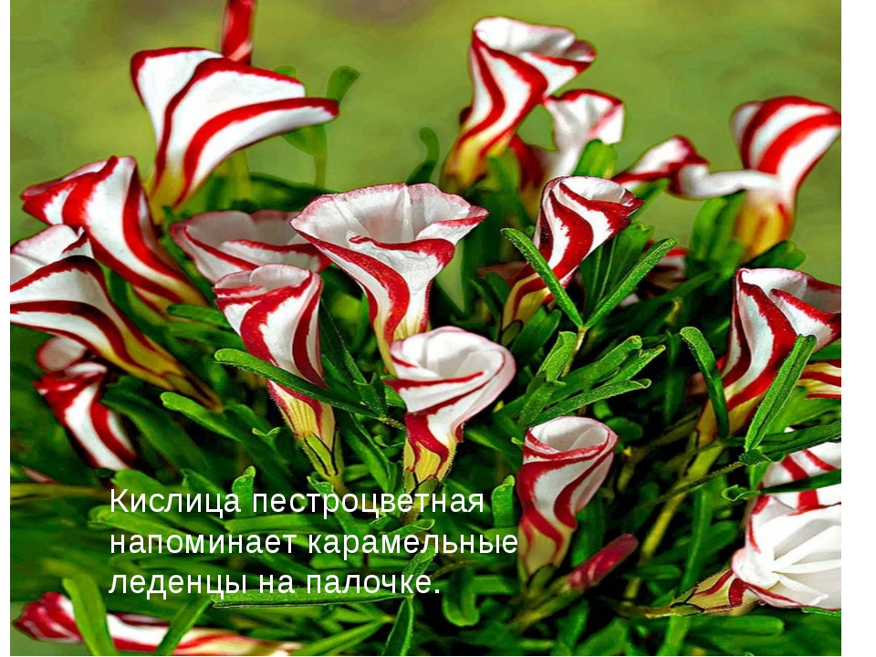 Оксалис Версиколор – это растение с богатой историей. Многолетник имеет красивые цветы, которые в раскрытом виде напоминают сахарные леденцы на палочке. Именно отсюда пошло еще одно название цветка – карамельный.