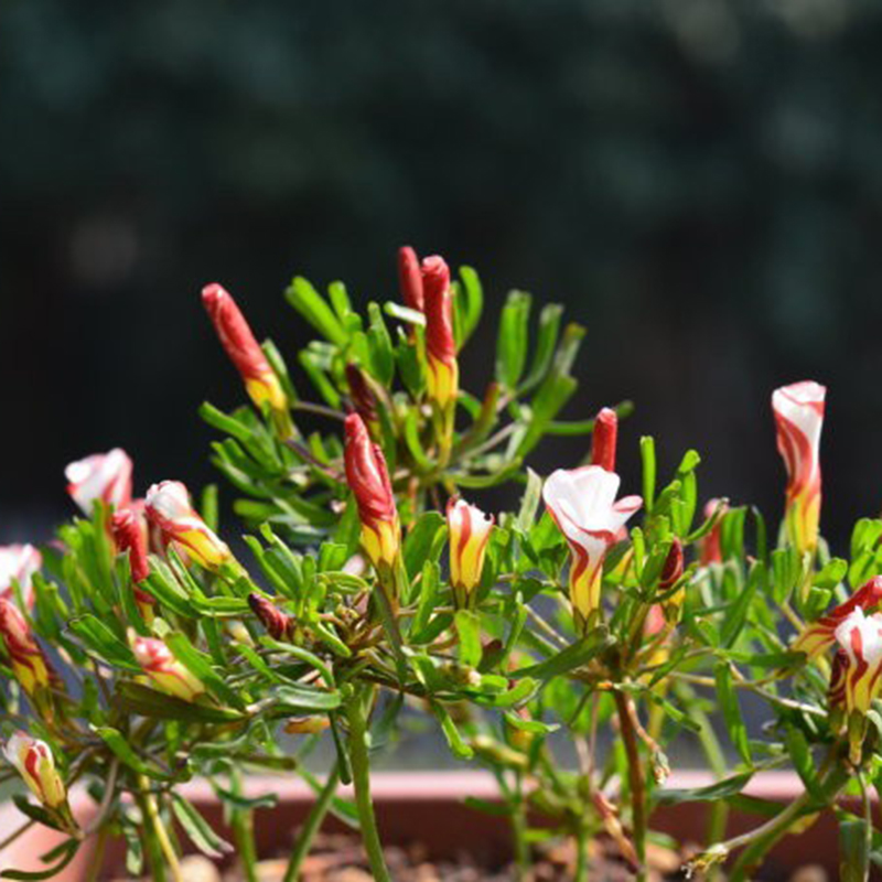Оксалис версиколор (versicolor) привлекает любителей комнатных растений своими необычными цветами. С внутренней стороны они окрашены в молочно-белый цвет, а с внешней они белые с красной окантовкой.