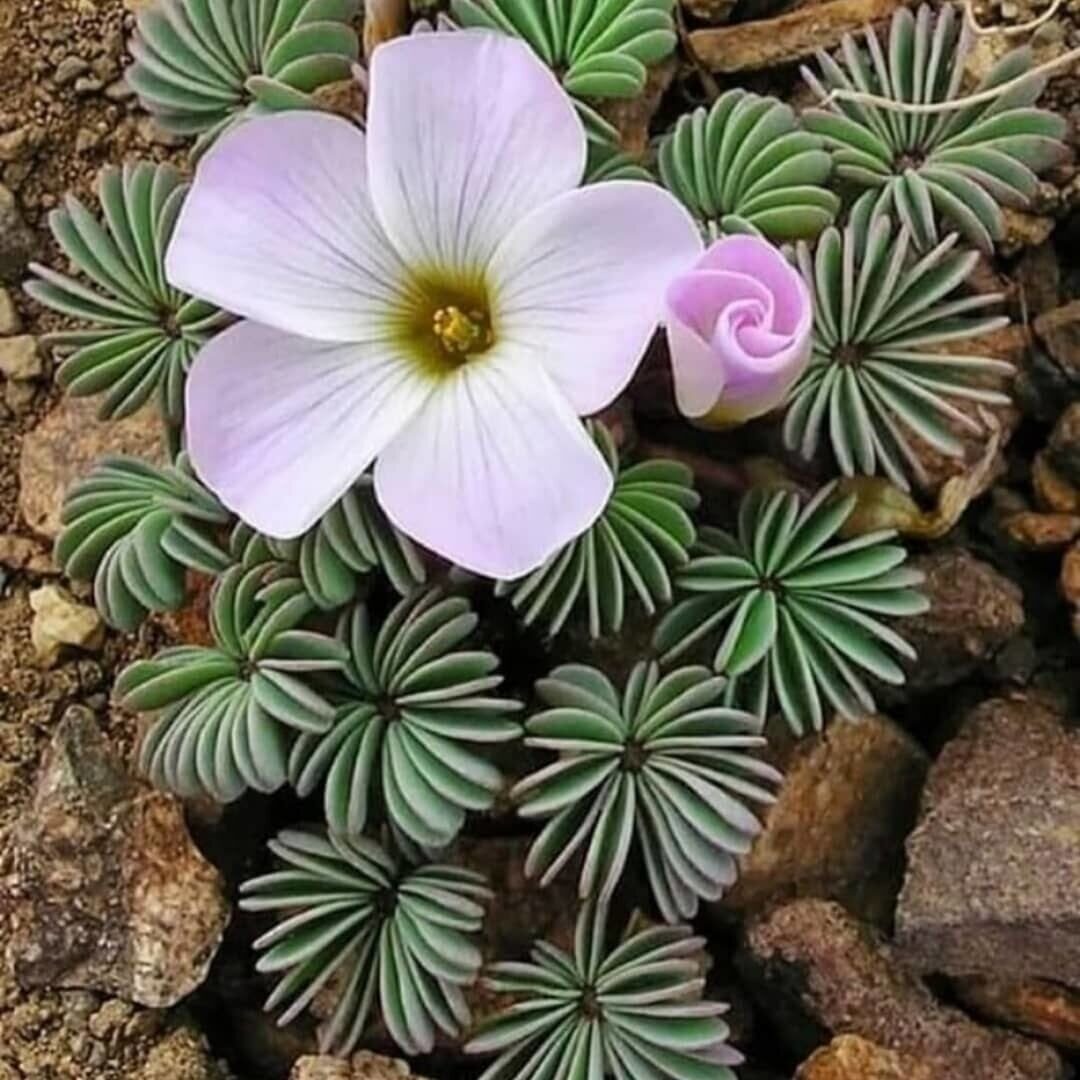 | Небольшие листочки светлого зеленого цвета, которые напоминают клевер. Он имеет крупные цветки фиолетового цвета, иногда бледные. | Кислица конвексула (Oxalis Convexula) | Подходит для выращивания в домашних условиях. |