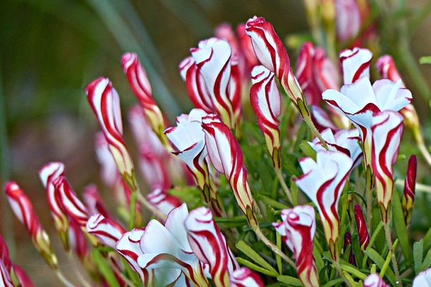 Сорт “Версиколор” отличается от остальных своими цветочками в полосах красного и белого цветов, которые похожи на карамельные леденцы. Цветут круглый год. | Голден Кейп садовая | Используется для украшения участков на даче, клумб с цветами, потому что по форме и окрасу отлично с ними гармонирует. |